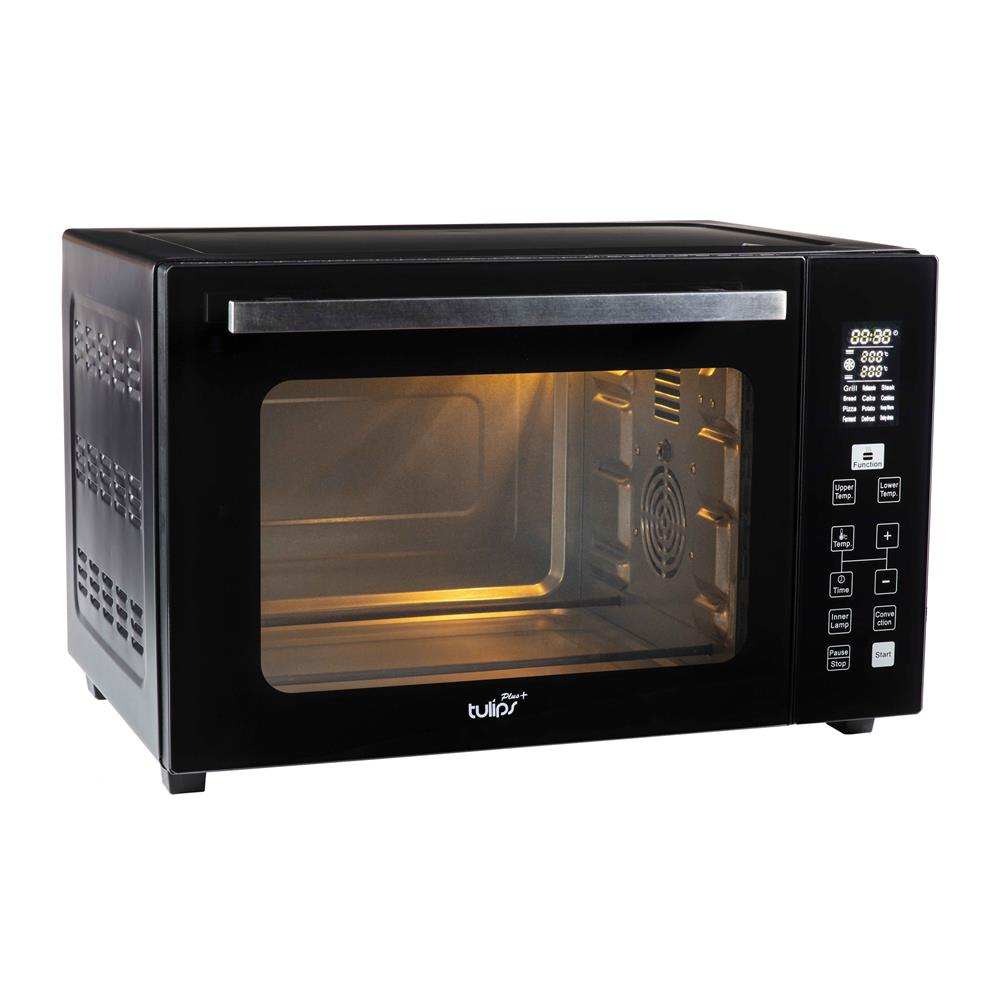 با توان 1500 وات و گنجایش 38 لیتر به شما این امکان را می دهد تا بتوانید به راحتی و با صرف زمان کمی حجم زیادی از انواع مواد غذایی شامل غذاهای گوشتی، نان و… را پخته یا روی قفسه مخصوص، گریل نمایید. این دستگاه دارای 12 برنامه پخت بوده و مجهز به قطعه جوجه گردان می باشد. همینطور درون محفظه چهار المنت حرارتی به صورت دو المنت در بالا و دو المنت در پایین قرار گرفته اند. از دیگر امکانات این دستگاه سینی توری مخصوص جهت خشک کردن میوه می باشد. از طریق درب شیشه ای دوجداره و به کمک لامپ روشنایی داخل فر و نمایشگر دیجیتال دستگاه نیز می توان بر مراحل پخت غذا نظارت کامل داشت. همچنین دستگیره درب از جنس استیل مقاوم ساخته شده و ظاهری زیبا به آن بخشیده است. آون توستر OT – A3808 CD تولیپس پلاس مجهز به فن کانوکشن و توزیع هوای گرم بوده تا پخت سریع و یکنواختی داشته باشید. درجه حرارت پخت نیز تا 230 درجه سانتی گراد قابل تنظیم و کنترل می باشد و با توجه به حجم و نوع مواد غذایی می توان دمای مورد نیاز را به آسانی تنظیم نمود. برای برخی از عملکرد ها , مانند گرم نگهدار , تخمیر , دیفراست و میوه خشک کن , فقط المنت پایینی روشن شده و کار میکند و برای سایر عملکردها می توان دمای پیش فرض المنتهای بالا و پایین را با استفاده از تنظیمات دستی , در محدوده مشخصی , به دلخواه تغییر داد . دکمه های دیگر قابل تنظیم در 4 وضعیت خاموش، جوجه گردان، فن هوای گرم و جوجه گردان همراه با فن هوای گرم می باشد. بر حسب نوع پخت و حجم مواد غذایی زمان مناسب پخت غذا تا 120 دقیقه با قابلیت قطع خودکار قابل تنظیم است.