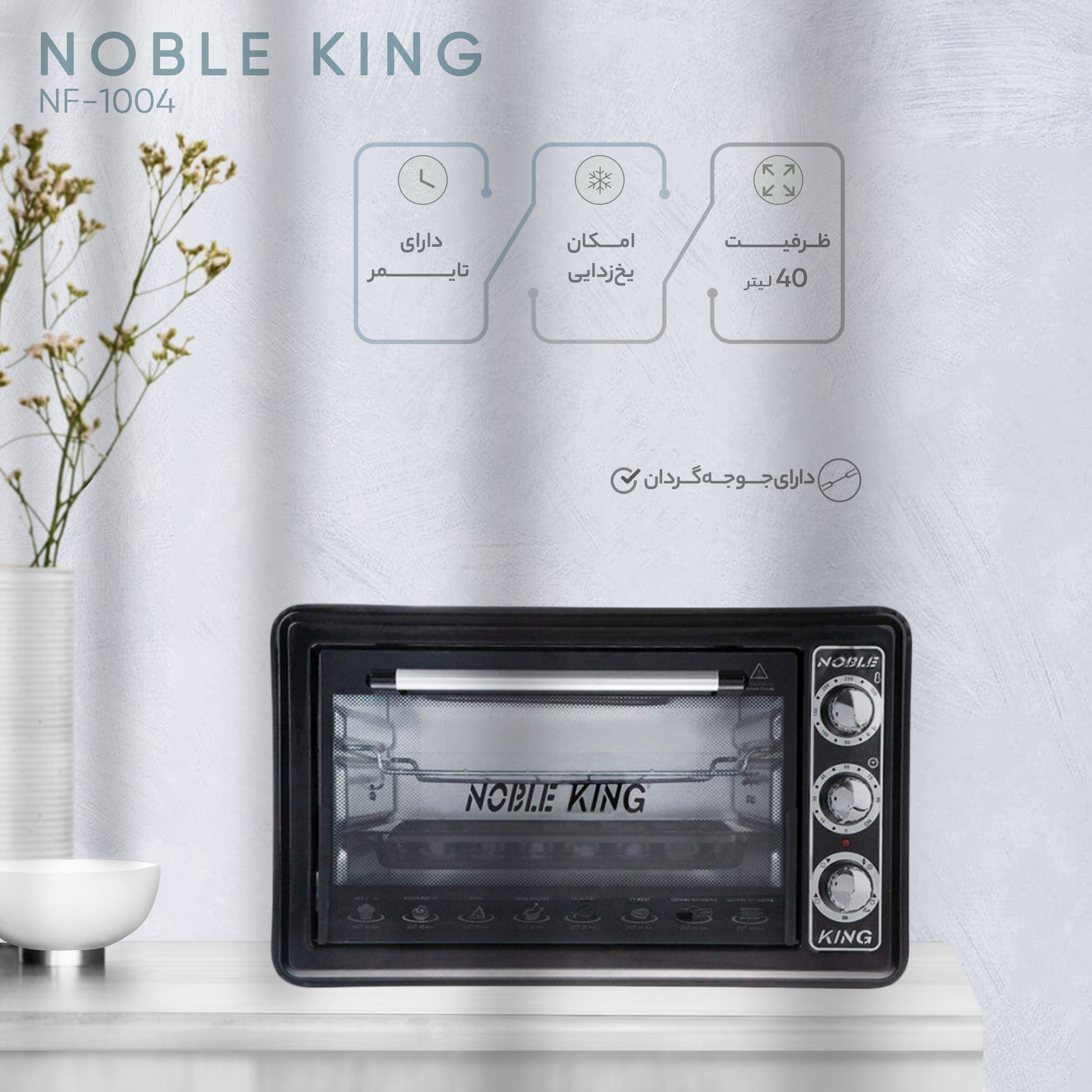 آون توستر «نوبل کینگ» مدل «NF-1004» با گنجایش زیادی که دارد میتواند غذاهای زیادی را آماده کند. باقدرت بالایی که مدل NF-1004 دارد حرارت داخل آون را تا حدی بالا میبرد که حتی میتواند گوشت را کباب کند. ظرفیت 42 لیتری این آون توستر امکان قرار دادن غذا با حجم بالا را نیز ممکن میسازد و بهراحتی میتوان از جوجهگردان استفاده کرد تا مرغ بریان شده را برای وعدههای غذایی آماده کرد. حداکثر دمای ایجادشده توسط این دستگاه 320 درجه سانتی گراد است. استفاده از سینی قابل جدا شدن امکان گریل کردن را هم میدهد. این دستگاه دارای تایمر است تا احیاناً در صورت فراموشی غذا نسوزد همچنین تایمر دستگاه تا 90 دقیقه قابلیت دارد. ضمناً در پایان زمان تعیینشده با یک زنگ، خاتمه پخت اعلام میشود. از دیگر ویژگی ها می توان به سیستم محافظ برق، شیشه دو جداره، بدنه داخلی نچسب، جوجه گردان، سيني غذا و توري گريل اشاره کرد اين آون توستر قابليت تنظيم روشن شدن گريل بالا، پايين يا گريل بالا و پايين به صورت هم زمان را دارد. همچنین کیفیت ساخت بالای محصول تولیدی این شرکت، برای تمام کاربران، بیشازپیش، تضمینشده است.