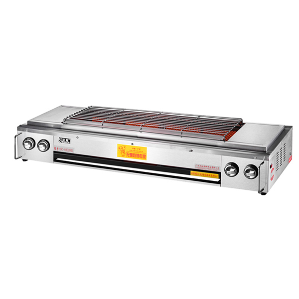 این باربیکیو گریل گازی تابشی در منازل و فضای باغ یا آلاچیق کاربرد بسیار زیادی دارد. این باربیکیو گریل گازی تابشی با طول 120 سانتی متر که شامل 78 در 20 سانتی متر کباب پز میباشد میتواند پاسخگوی نیاز شما جهت هرگونه پخت و پز کباب استیک برگر و همچنین سرخ کردن و… در منزل و فضای باغ یا آلاچیق شما باشد و با توجه به دارا بودن حالت گازی تابشی به استفاده از اجاق های اضافی دیگر ندارید.در باربیکیو گریل گازی تابشی در بدنه جلو و عقب 4 صفحه سرامیکی گازی تابشی در دو طرف تعبیه شده که باعث پخت مطلوب تر کباب و جلوگیری از سوختن ان میشود (شعله غیر مستقیم) حالت پخت کباب ترکی. از مزایای دیگر این باربیکیو گریل گازی تابشی بدنه استیل ضد زنگ و ضد رطوبت بوده و همچنین باربیکیو گریل گازی تابشی دارای دو دستگیره استیل از سمت جلو دو طرف در ابتدا و انتها راست و چپ برای جابجایی و حمل و نقل راحت تعبیه شده است. همچنین لازم به ذکر است این باربیکیو گریل گازی تابشی بدون پایه بوده و به سادگی میتوان در خودروی شخصی جای داد. همچنین این باربیکیو گریل گازی تابشی دارای سینی چکه گیر، توری متحرک مسطح می باشد.