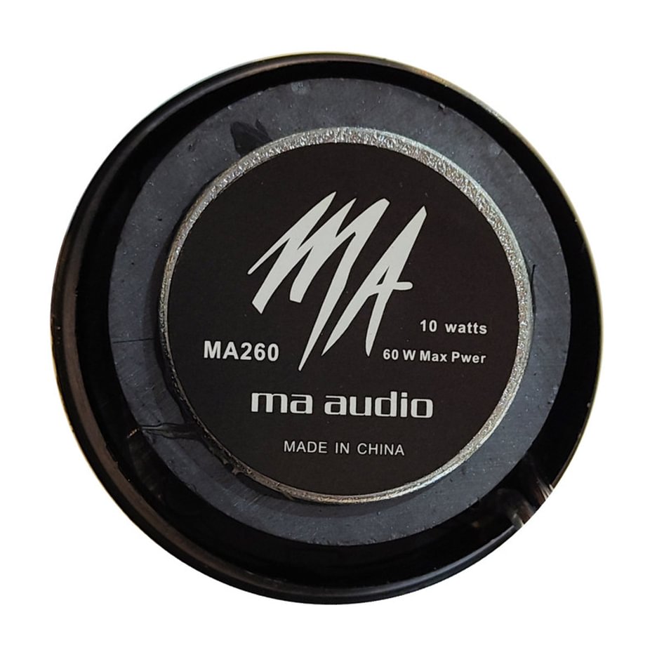 توییتر خودرو ام ای آدیو مدل MA260: سایز این توییتر 2 اینچ می باشد. توان اسمی(RMS) این توییتر 10 وات و توان حداکثر آن 60 وات می باشد. امپدانس توییتر 4 اهم می باشد. این توییتر دارای حساسیت 93 دیسیبل و بازه فرکانسی 2HZ-22KHZ می باشد.