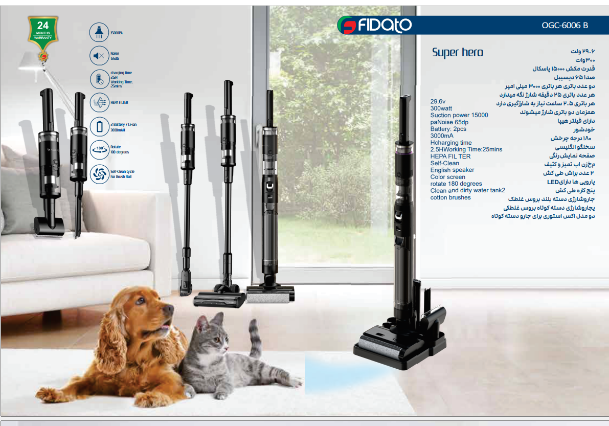 جارو برقی شارژی بدون سیم برند ایتالیایی فیداتو مدل : OGC-6006 Gتحت لیسانس کشور ایتالیا