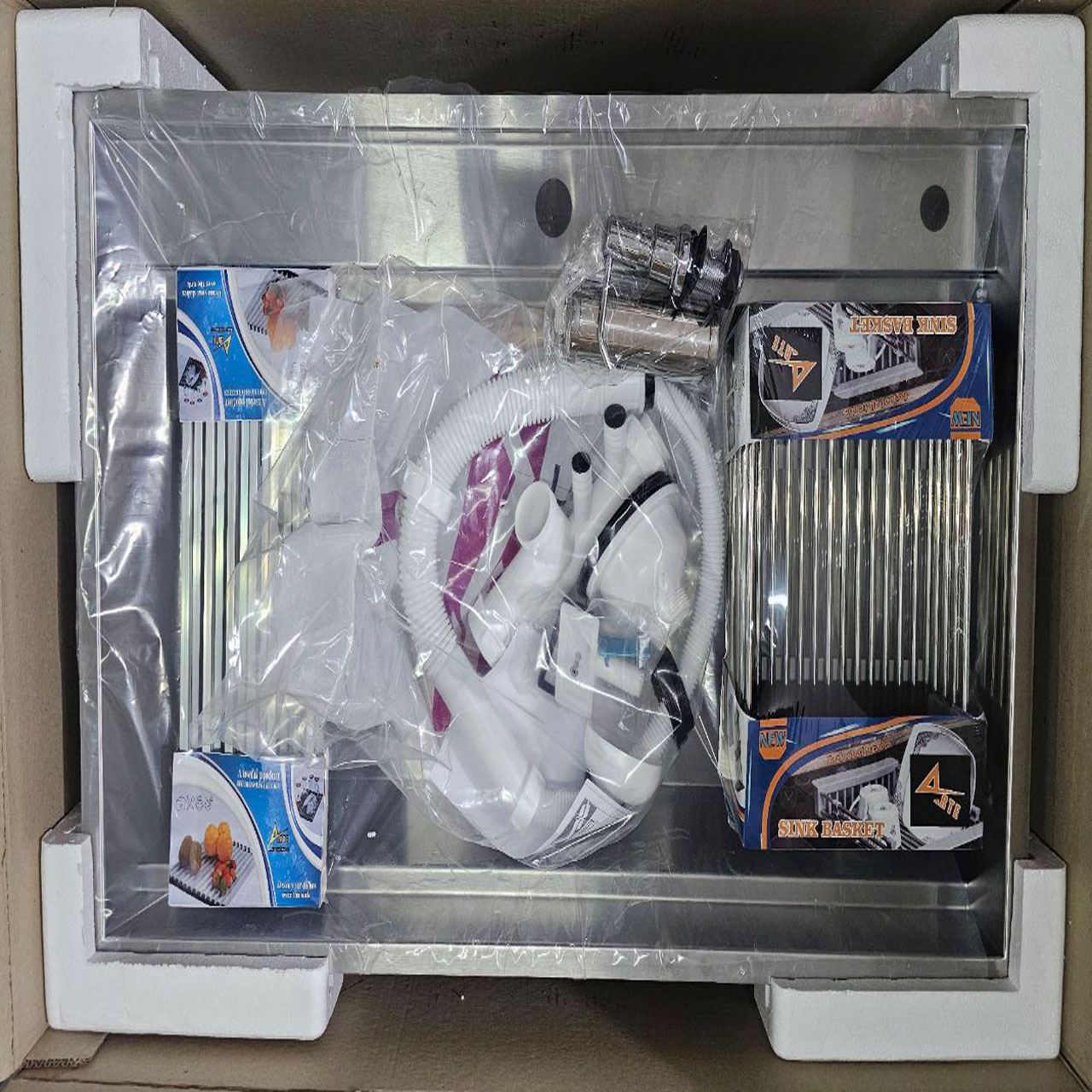 سینک زرتوس با اکسسوریهای کاربردی، جامایع توکار و سیفون . این محصول با یک لگن جادار و شیب جزئی داخل لگن طراحی شده است. صافی سیفون برای جلوگیری از مسدود شدن مسیر فاضلاب با مواد غذایی، جنس بدنه مستحکم و روکش مقاوم به لکه های ناشی از قطرات آب، شوینده و وایتکس از دیگر مشخصات سینک دستساز باکسی است