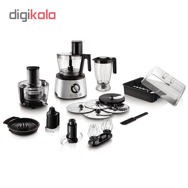 غذاساز مدل «HR7778» از قسمتهای مختلفی تشکیل شده و هر قسمت، نشاندهندهی یکی از قابلیتهای متفاوت دستگاه است. بدنهی اصلی دستگاه ظاهری زیبا داشته و پیچ تنظیم روی آن قرار دارد که قدرت دستگاه را در سرعتهای مختلف تنظیم میکند. حالت پالس یا لحظهای را هم برای مدل HR7778 در نظر گرفتهاند. طراحی این وسیله بهگونهای است که اگر هریک از قسمتهای دستگاه مانند ظرف مخلوطکن یا خردکن درست روی دستگاه نصب نشوند و در آن بهدرستی بسته نشود، موتور روشن نمیشود؛ بهاینترتیب بروز هرگونه خطر از بین میرود. ظروف مخلوطکن، خردکن و آبمیوهگیری پلاستیکی، شفاف و باکیفیت هستند. دیسکهای رنده و برشزن متنوع در این مدل به تهیهی مواداولیه و آمادهکردن آنها برای طبخ انواع غذا کمک میکنند. تیغهی خردکن از جنس استیل ضدزنگ است و هرچیزی را خرد و ریز میکند. پرهی همزن دوگانه برای همزدن سسها و خمیرهای سبک مناسب است. بهاینترتیب تهیهی شیرینی و سسهای متنوع ممکن میشود. کاردک پلاستیکی برای تمیزکردن و خارجکردن مواد ارائه شده است. همراه این مدل، متعلقات آبمرکباتگیری هم عرضه میشود. قسمت آبمیوهگیری که شامل تیغه و فیلتر است، همراه این مدل به خریداران عرضه میشود که میتواند میوههای خشکتر مانند سیب یا میوههای مشابه را آبگیری کند؛ مقداری از لرد و پالپ میوه هم وارد آبمیوه میشود تا هم طبیعیبودن آن مشخص و هم طعم آن بهتر شود. در این مدل، محفظهی نگهداری تیغهها و دیسکها عرضه میشود تا نگهداری آنها آسان باشد و آشپزخانه بههمریخته نشود. پایههای ضدلغزش زیر بدنهی اصلی، مانع جابهجایی و لرزش دستگاه حین فعالیت میشود. میزان صدای دستگاه هم زیاد نبوده و استفادهی روزانهی آن آزاردهنده نیست.