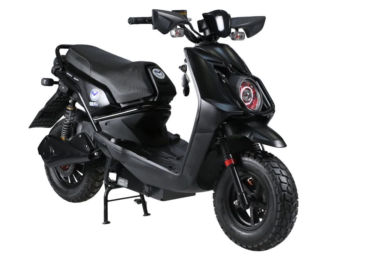 موتور سیکلت برقی مادو مدل 230موتور برقی تک چراغ مادو 230 با رنگبندی مشکی سفید نقره ای