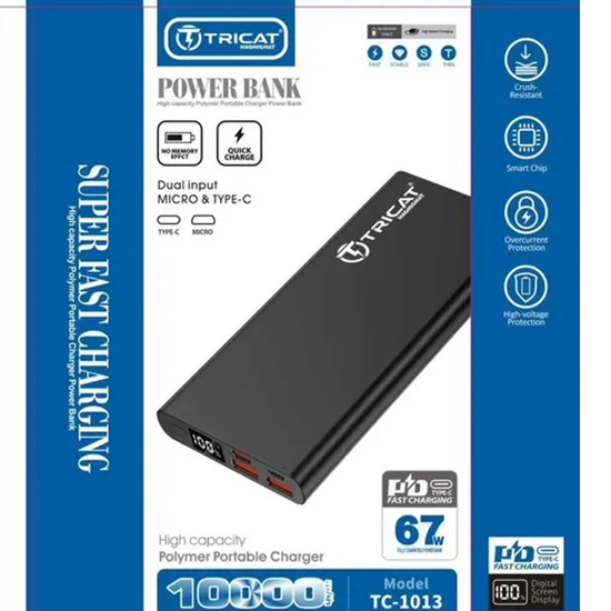 پاوربانک سوپر فست شارژ تریکت 10000 میلی آمپر 67 وات