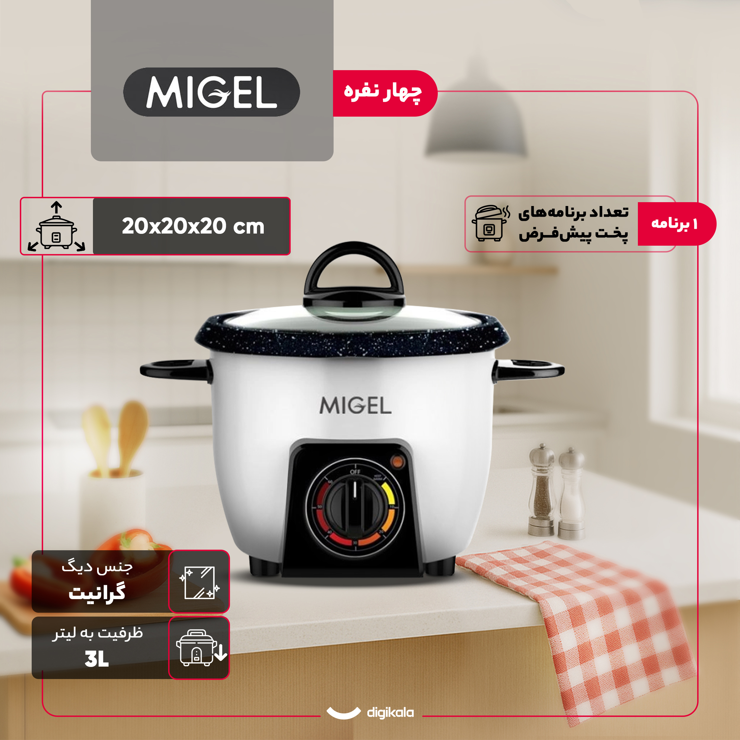 پلوپز میگل مدل GRC ۱۵۵ در دسته دستگاههای ساده قرار دارد و با ظرفیت ۳ لیتر مناسب خانوادههای کوچک و افرادی است که مصرف کمی از برنج دارند. این مدل طراحی مینیمالی دارد و استفاده از المنت پایین برای گرمایش، روش مرسومی است که در بسیاری از پلوپزهای اقتصادی دیده میشود. المنت پایین عملکرد قابل قبولی در پخت برنج و تهدیگ ارائه میکند، اما در مقایسه با سیستمهای گرمایش چند جهته، ممکن است در برخی مواقع توزیع حرارت کامل نباشد و کیفیت تهدیگ بسته به نوع برنج و میزان آب متفاوت باشد.
