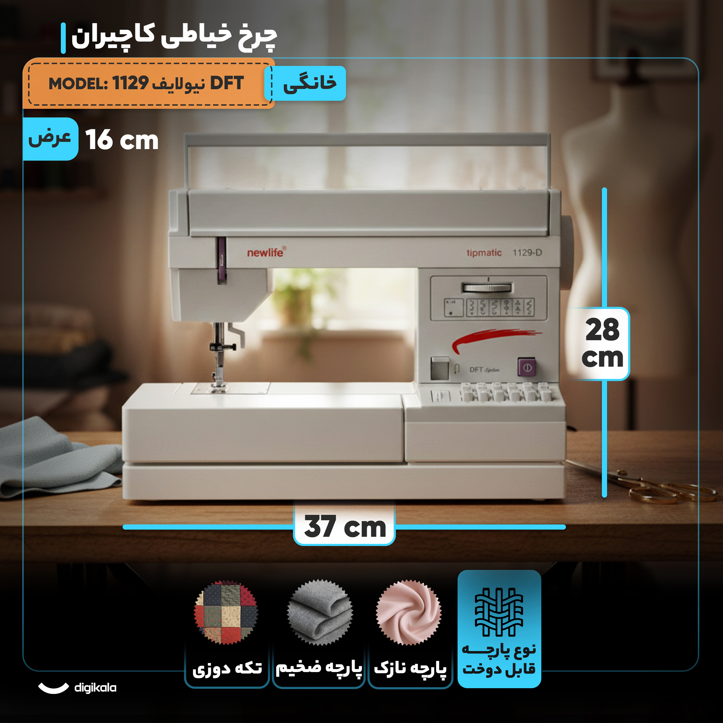 چرخخیاطی مدل «1129» عرضه شده توسط شرکت «کاچیران» است و در سری چرخ خیاطی های نیولایف قرار دارد. این دستگاه با پشتیبانی از طرحهای دوخت مختلف، این امکان را برای مصرفکننده فراهم میسازد تا بتواند تنوع گسترده ای از دوخت در اختیار داشته باشد. بدنه دستگاه آلومینیومی سبک و محکم است. این دستگاه میتواند عرض دوخت 0 تا 5 میلیمتر و طول دوخت 0 تا 6 میلیمتر را انجام دهد. مجموع انواع دوخت مدل 1129 بهصورت ترکیبی تا 84 طرح میرسد. پدال این مدل الکترونیکی و دو وضعیته بوده و به کاربری آسانتر دستگاه کمک میکند. این محصول از سری نیولایف دارای جعبه مخصوص قطعات و لوازم نیز هست. این مدل امکان دوخت استرچ را هم دارد که برای پارچههای کشی و استرچ کاربرد و قابلیتی مهم است. چرخخیاطی کاچیران مدل 1129 قابلیت دوخت دو سوزنه هم دارد. امکان دوخت حلقوی با کمک بازوی آزاد و قابلیت جیر دوزی و نخ عمامه دوزی و ژور دوزی این دستگاه را نسبت به رقبایش برتری می دهد. گفتنی است این دستگاه دارای تأییدیهی ایمنی سازمان استاندارد و تحقیقات صنعتی ایران و همچنین CE اروپا و CB Scheme بوده و همهی لوازم الکتریکی در آن تحت استاندارد RoHs تعبیهشده است.