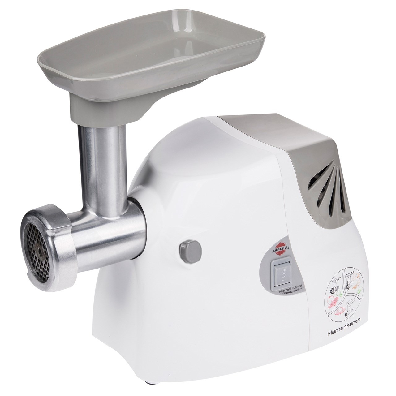 چرخگوشت همهکارهی «پارس خزر» (Pars Khazar)، بدنهای بسیار مقاوم، قطعات جانبی کامل و قابلیتهای فراوانی دارد. این محصول با توان خروجی 1200 گرم در دقیقه و جنس تیغهی استیل به همراه سوسیسساز تولید شده است. از دیگر مشخصات کلی این چرخگوشت همهکاره میتوان به کلید برگردان (Reverse) برای برگرداندن موادغذایی باقیمانده در دستگاه بدون نیاز به بازکردن چرخگوشت؛ داشتن محفظهی نگهداری سیم و شبکه؛ داشتن فیلتر جداکنندهی آبمیوه، خردکن و مخلوطکن؛ قابلیت آبگیری میوههای مختلف از قبیل لیموترش، انار، هویج، سیب، گلابی، کیوی، انگور، غوره و… ؛ قابلیت خردکردن پیاز و سیبزمینی خام بهصورت مجزا یا مخلوط؛ قابلیت خرد و مخلوطکردن فرمهای مختلف ماکارونی و رشته؛ داشتن تیغهی برشی (ریز و درشت) و ورقهای جهت برش چیپسی مناسب برای رندهکردن سیبزمینی (خام/پخته)، هویج (خام/پخته)، سیب، خیار، خیارشور، شلغم و سایر میوههای سفت؛ داشتن تیغهی برشی خردکن ریز (پوره ساز) مناسب برای پورهکردن سیبزمینی پخته، تخممرغ پخته، شلغم، گوجهفرنگی و هویج پخته و داشتن گواهینامهی استاندارد ایمنی اشاره کرد. گفتنی است که به همراه این محصول، دو عدد شبکهی مخصوص گوشت چرخکرده، قیمه و سبزی؛ ظرف پلاستیکی جهت جمعآوری گوشت چرخکرده؛ ظرف جمعآوری آبمیوه؛ کاردک پلاستیکی سفیدرنگ جهت سهولت در برداشتن موادغذایی از روی تیغهها و سینی به رنگ سفید با قابلیت قرارگیری روی گلویی لاستیکی همراه با گوشتکوب پلاستیکی به کاربران ارایه میشود. در نظر داشته باشید که پارس خزر، یک شرکت بزرگ ایرانی است که از سال 1347 با همکاری شرکت توشیبای ژاپن، آغاز به کار کرده است. این شرکت در زمینهی ساخت لوازمخانگی، فعالیتهای گستردهای را در کشور انجام میدهد.