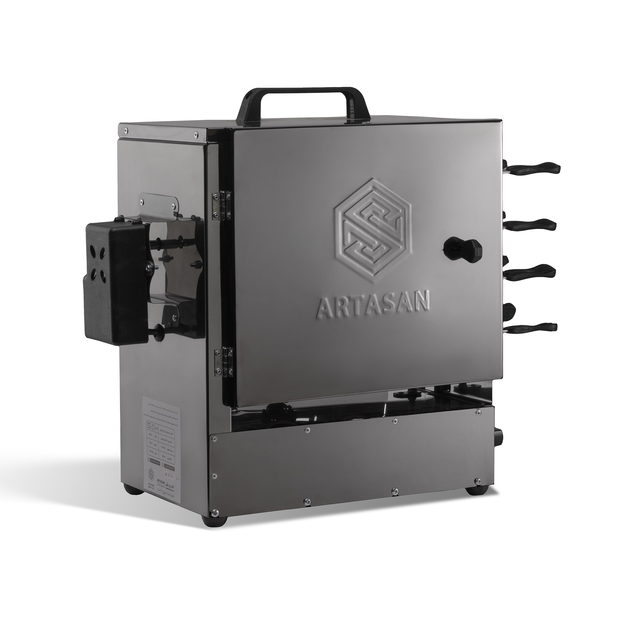 کبابپز برقی آرتاسان مدل بدون دود ایستاده دو طرفه، امکان پخت هر نوع کباب به صورت مغزپخت و همچنین به دور از هرگونه خطرات و سختیهای ناشی از اعمال سنتی از قبیل روشن کردن آتش و لولهکشی گاز را فراهم کرده است.