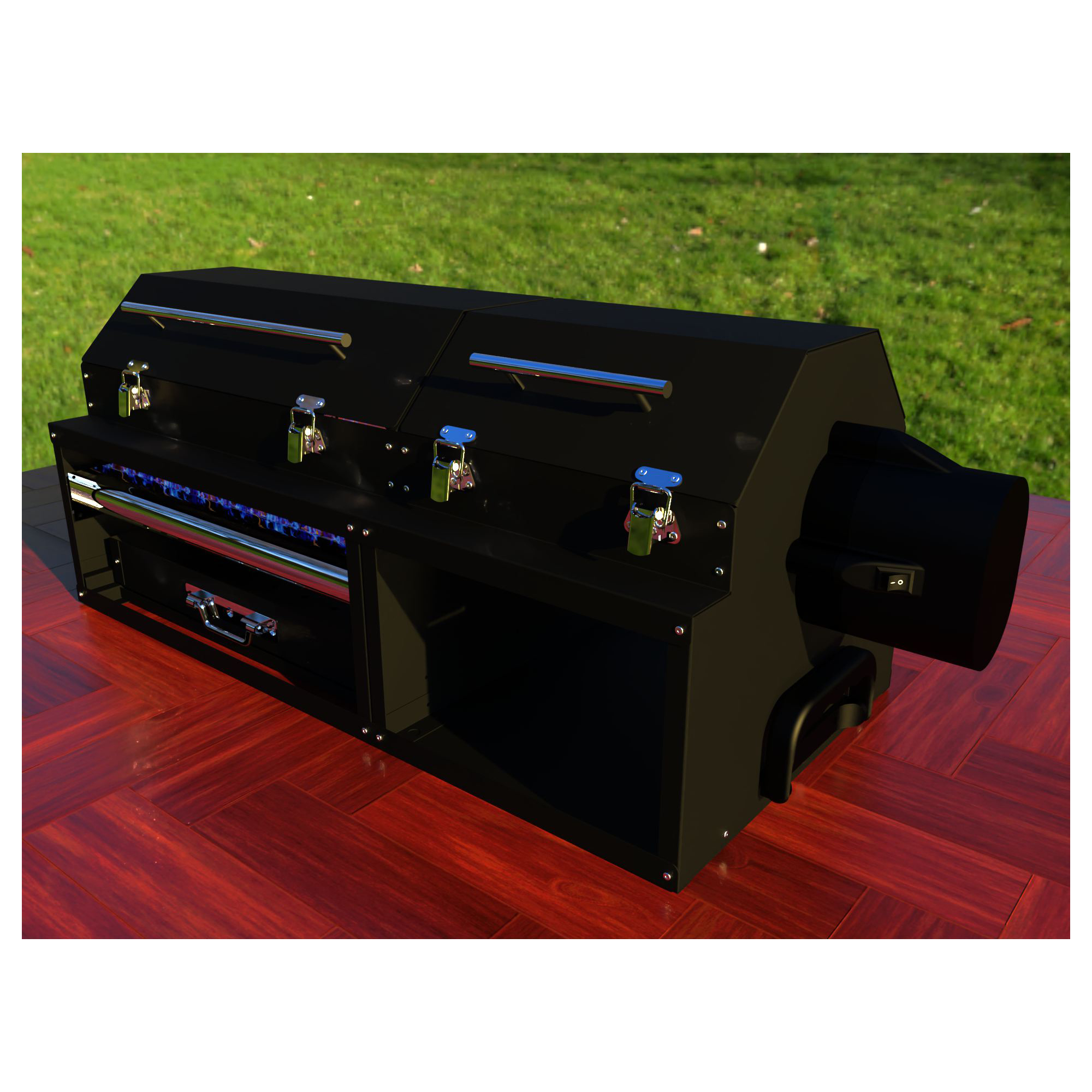 کبابپز باربیکیویی دوگانهسوز گازی-زغالی با مکانیزم چرخش سیارهای اتوماتیک مدل JIPNO110-B6 ، دستگاهی است که توسط شرکت “جهان یکه پرداز نوآور” جهت پخت کبابی و یکنواخت انواع گوشت و مواد غذایی طراحی گردیده است. این کبابپز دارای 6 سیخ گیر بوده و قابلیت استفاده از گاز یا زغال را به صورت همزمان یا جداگانه داشته و با مکانیزم چرخش سیارهای و درب باربیکیویی ، از مغزپخت شدن و پخت یکنواخت غذاها اطمینان حاصل مینماید. یکی از مزایای این دستگاه، کاهش قابل توجه دود و بوی نامطبوع در محیط است، زیرا به کمک این مکانیزم سیارهای و محل قرارگیری مشعل ها (برنرها) تا حد زیادی از چکیدن روغن و آب حاصل از پخت مواد غذایی متصل به سیخها بر روی منابع حرارتی جلوگیری شده است. طراحی ایمنی این کبابپز به گونهای است که خطرات دسترسی به منابع حرارتی را برای افراد بویژه کودکان کاهش و در مواردی غیرممکن ساخته است و همچنین با استفاده از سیخ های استیل استاندارد موجود در بازار و با گریدهای 403 یا 430 اصطلاحا بگیر، فرآیند پخت آسانتر میشود. این کبابپز بهطور همزمان میتواند از برق 220 ولت، 12 ولت یا به صورت دستی استفاده نموده که آن را برای شرایط مختلف مناسب میسازد. در مجموع، این اختراع با دوگانه سوز بودن خود، مکانیزم چرخش نوآورانه و طراحی ایمن، تجربهای بهینه از پخت غذای کبابی را ارائه داده و مشکلات رایج دستگاههای موجود را برطرف مینماید.
