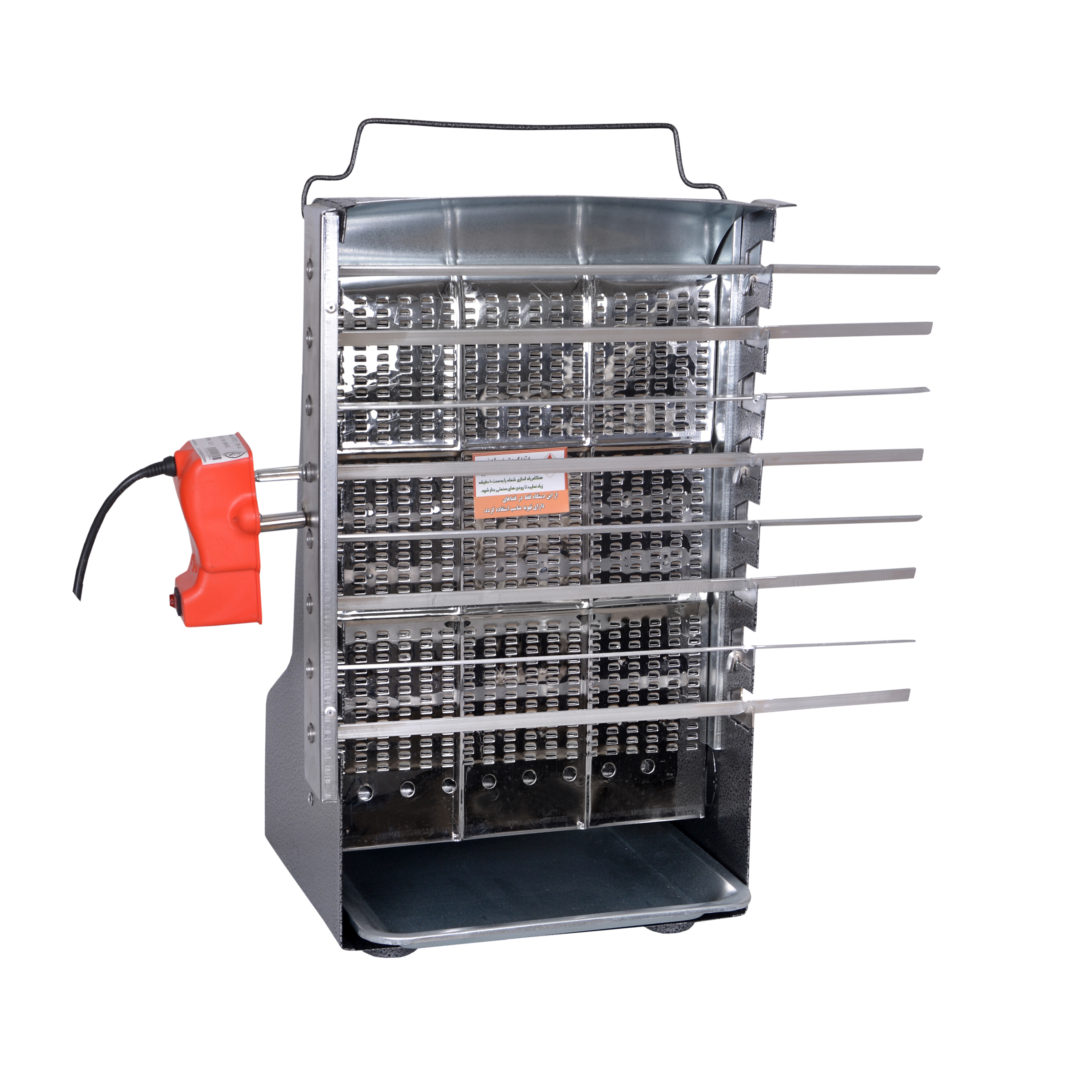 کباب پز ضیافت یک کباب پز مناسب، کار آمد و قابل استفاده در آپارتمان ها می باشد از ویژگی های این محصول میتوان به بدون بو و دود بودن آن اشاره کرد. همچنین در این محصول حرارت به طور کامل و یکسان پخش میشود. این محصول به دلیل کارایی و ویژگی که دارد مناسب استفاده در آپارتمان ها و منازل بدون تراس .و بالکن می باشد. این کباب پز دارای یک سینی چگه گیر می باشد. سیخ گردان برقی ضیافت یکی از قطعات کباب پز برقی ایستادهی این تولیدکننده است که فقط به همراه این محصول مورد استفاده واقع میشود. این دستگاه به تنهایی کاربردی ندارد و فقط باید روی دستگاه نصب شود تا بتوانید از آن استفاده کنید. پس از نصب موتور دستگاه به سطح سیخ گردان و اتصال سیخها به آن میتوانید دستگاه را به برق بزنید تا سیخهای کباب بچرخند. همراه این سیخ گردان 20 عدد سیخ کباب ارائه میشود که ده تای باریک و ده تای آن پهن هستند. این کالا به خوبی در کنار کبابپز ضیافت قرار گرفته و از سوختن کبابها و خرابشده غذا جلوگیری میکند. با خرید این دو دستگاه در کنار یکدیگر، درست کردن کباب به سادگی ممکن میشود و نیازی به سر زدن مداوم به کباب ها نخواهید داشت. کیفیت ساخت این کالا قابلقبول بوده و باعث میشود بتوانید در مدتی طولانی از آن استفاده کنید.این مدل جوجه گردان بر روی مدل های شعله وتابش قابل نصب واجرا می باشد .این مدل کباب پز از مدلهای جدید شرکت ضیافت می باشد که قابلیت پخت9سیخ کباب به طور همزمان را دارد ونسبت به مدلهای دیگر از نظر کیفیت قطعات و کیفیت پخت حرفه ای تر می باشد .